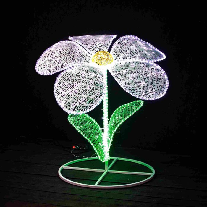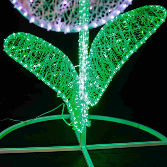 Светодиоды равномерно распределены по всей поверхности лепестков и сердцевины, обеспечивая плотное и равномерное свечение. Цвет — на выбор: от классического тёплого до ярких RGB-решений. Возможна индивидуальная настройка под корпоративный стиль или тематику мероприятия.
