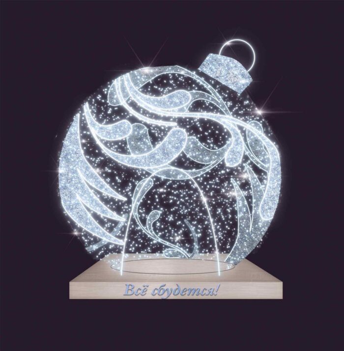 Световая фигура «Шар желаний» СК-183-1 — это масштабный арт-объект для уличного оформления, который моментально создаёт праздничное настроение и служит визуальной доминантой. Его форма — классический новогодний шар, дополненный проходом, в который можно зайти, чтобы сделать эффектные фотографии или просто насладиться световой атмосферой.