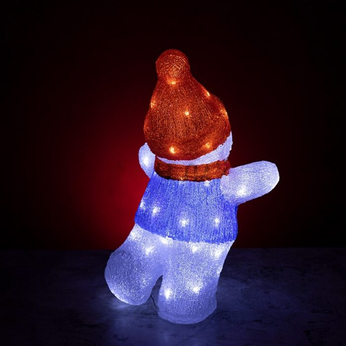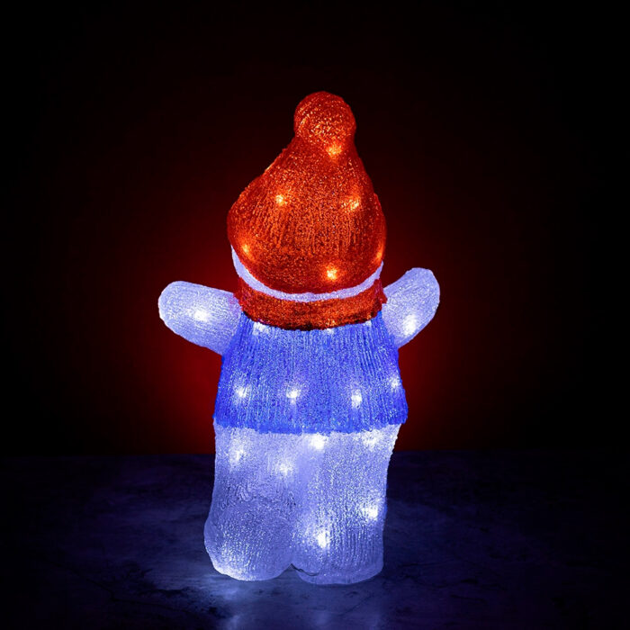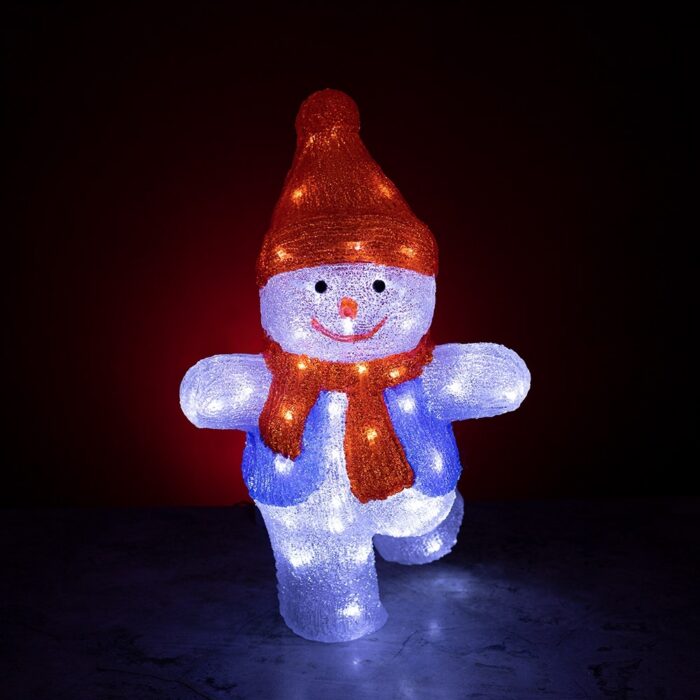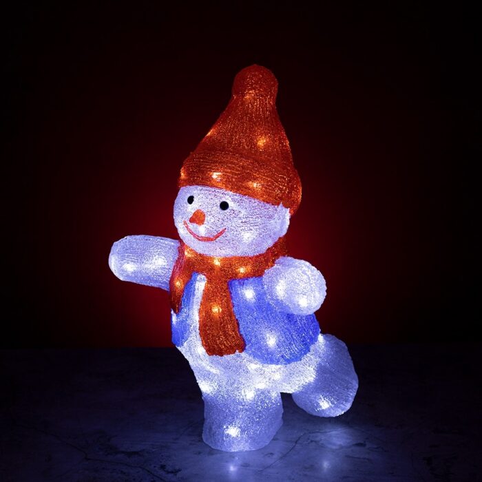Объёмная светодиодная фигура «Снеговик» высотой 50 см — компактный, выразительный и безопасный элемент новогоднего декора. Материал — акрил, холодное белое свечение, подключение от сети 220 В, степень защиты IP44. Идеальна для размещения у входа, под ёлкой, в детских зонах и на витринах. Станет ярким акцентом в доме, офисе, ТЦ, на стойке ресепшен или на уличной площадке под навесом. Работает до 50 000 часов.