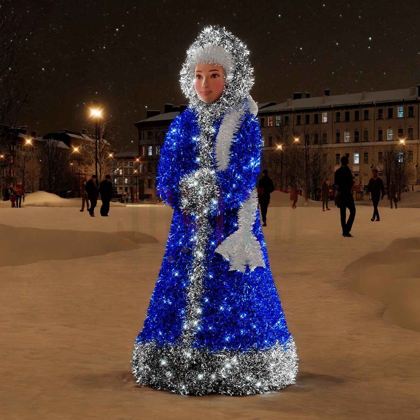 Светодиодная фигура из мишуры «Снегурочка» от JOYLED — эффектный элемент праздничного оформления для улиц, площадей, парков и торговых центров. Высота 1,8 м делает фигуру заметной, а сочетание синего и золотого свечения создаёт торжественную атмосферу. Каркас выполнен из алюминия, защита IP65 гарантирует работу при любых погодных условиях. Идеально подходит для новогодних мероприятий, городских праздников и корпоративных декораций.