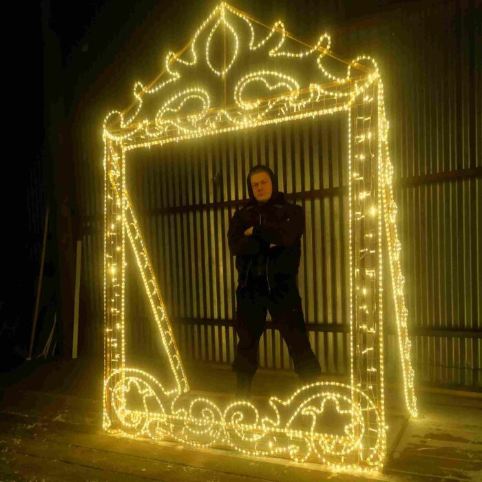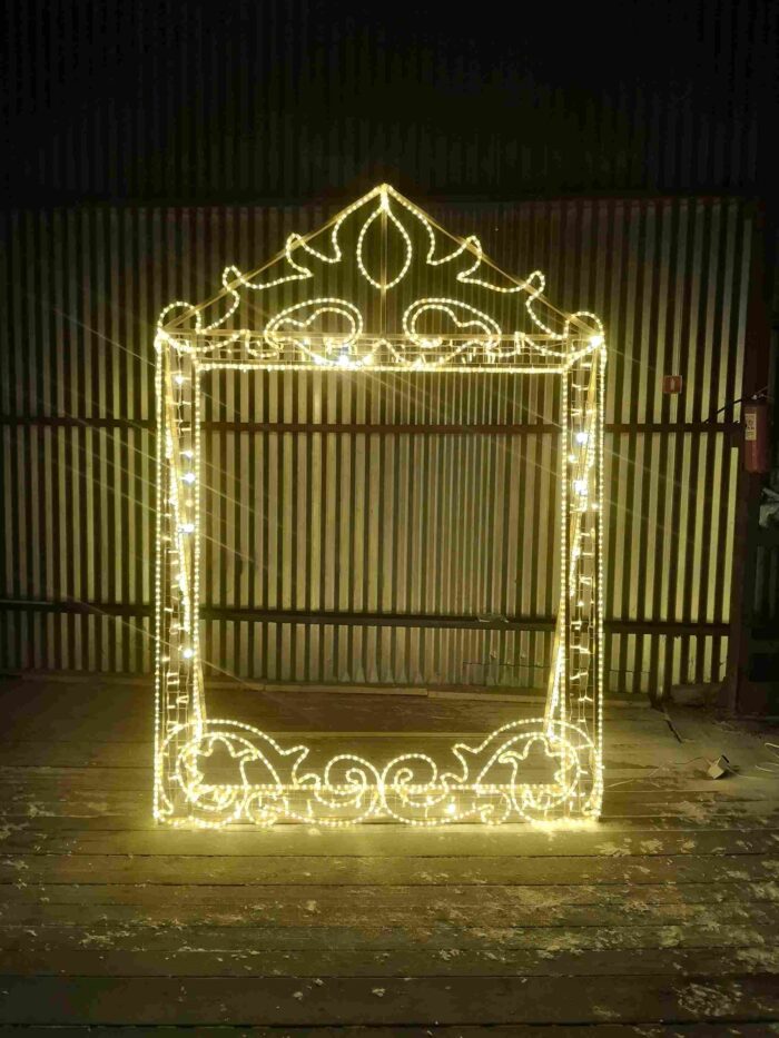 Впечатляющий дизайн — рамка сразу выделяется в городской среде и создаёт праздничный акцент.