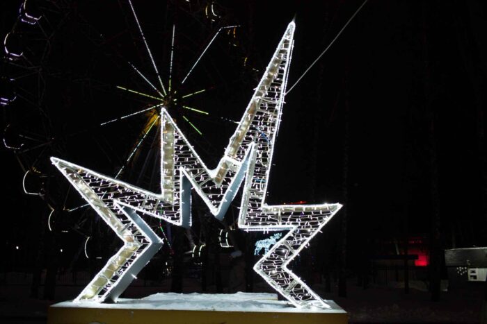 Световая фотозона СК‑358‑1 выполнена в формате объёмной 3D‑фигуры на металлическом каркасе. Она предназначена для использования на улице в любое время года, включая зиму. Конструкция устойчива, антикоррозийна, имеет стандарт защиты IP65 и рассчитана на суровые климатические условия.