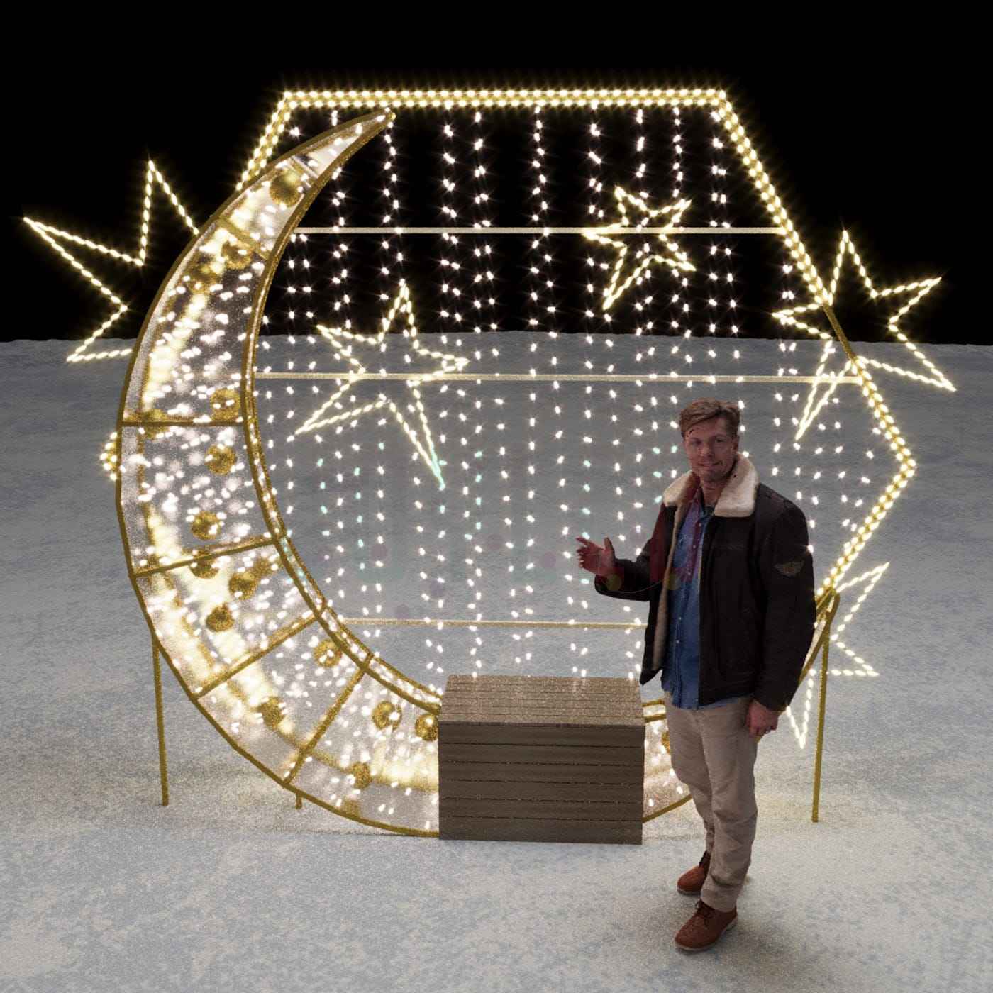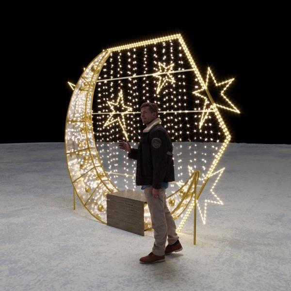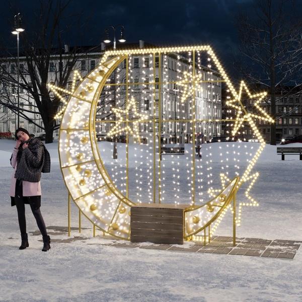 Световая фотозона со скамьёй «Полумесяц»