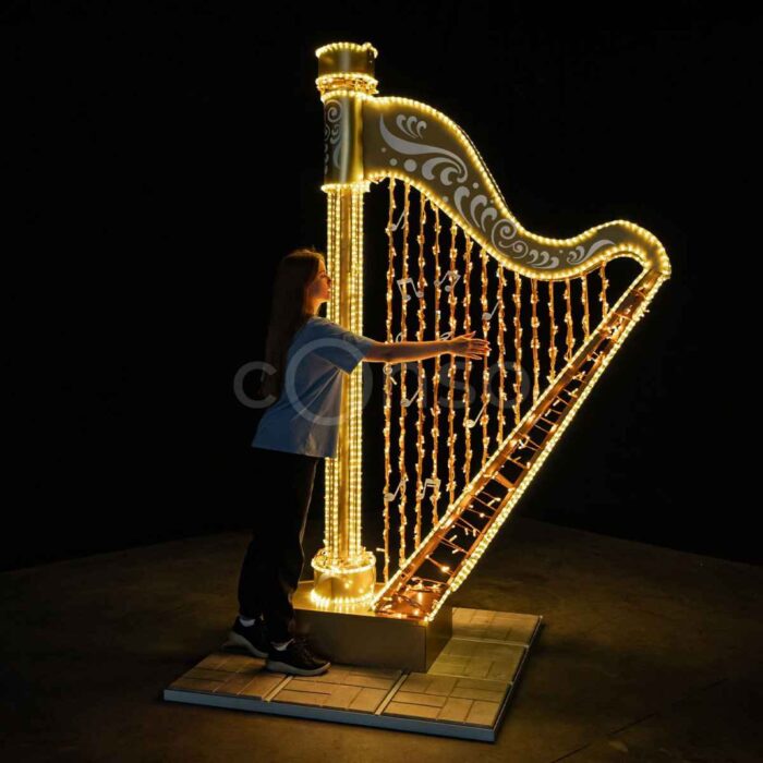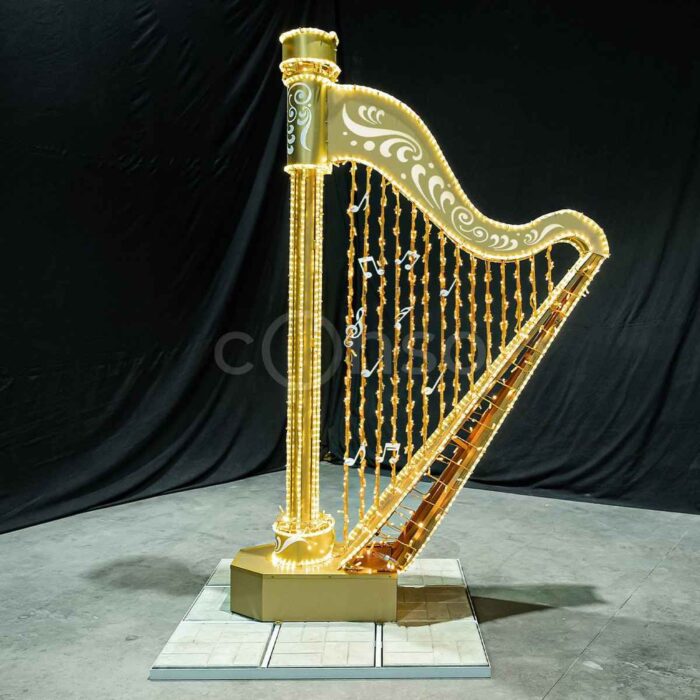 Световая фигура «Арфа» — это не просто праздничное украшение, а изящная арт-инсталляция, способная украсить любое пространство. Изготовленная из прочного алюминиевого каркаса и оснащённая тёплой золотой подсветкой, эта фигура добавляет уюта, роскоши и сказочности.