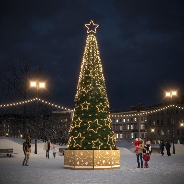 «Звездопад» — это световая ель, созданная JOYLED для тех, кто хочет оформить общественное пространство по-настоящему ярко. Её видно с любого ракурса, даже на загруженной городской улице. Высота 9 или 11 метров, свет в золотом или серебряном оттенке — вы выбираете, какой эффект нужен именно вам: тёплый уют или снежная лёгкость.