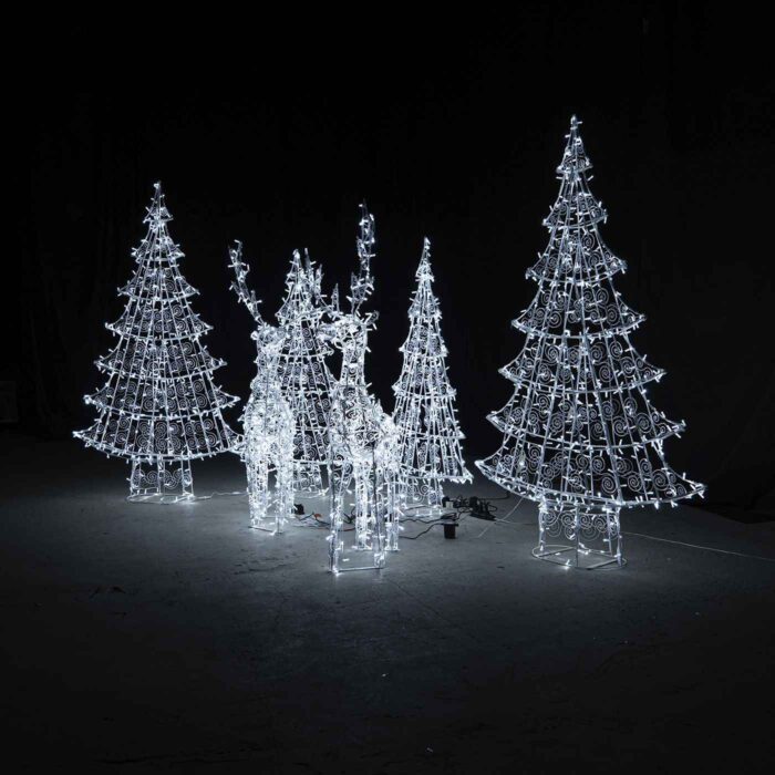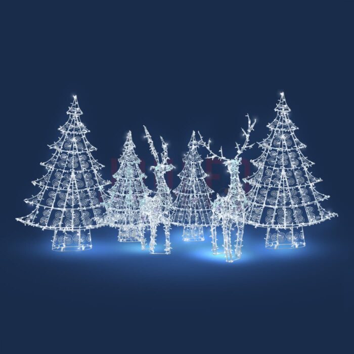 Композиции «Олени в лесу»: (олень серия 1,9м динамика — 2шт, ёлка серия 2,0м — 2шт, ёлка серия 2,5м — 2шт) — OL 164, IP65, холодный свет