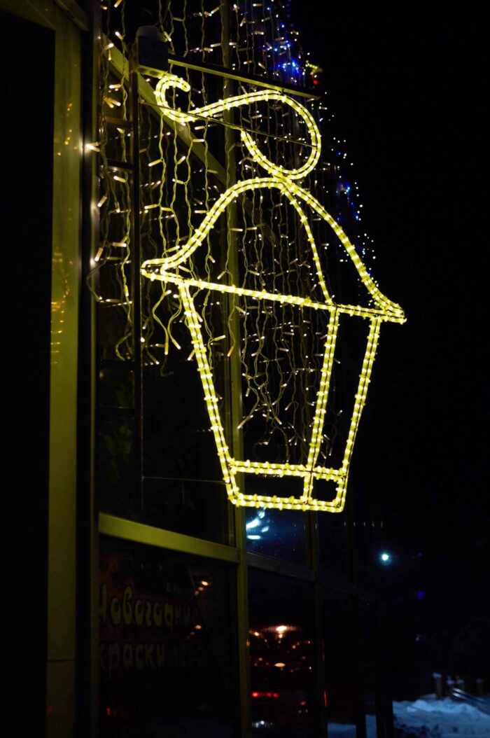 Световая консоль СК-128 — уличная фигура с тёплым свечением, выполненная в виде стилизованного фонаря. Размер 1,2×0,6 м, надёжный металлический каркас, IP65. Подходит для оформления городских улиц, фасадов и входных групп. Монтаж под ключ по Москве и МО. Работаем с муниципальными и корпоративными заказами.