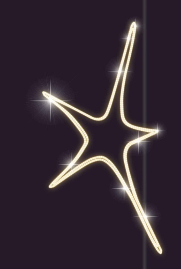 СК-130 — это световая уличная консоль в форме звезды, разработанная специально для оформления опор освещения, фасадов зданий и уличных пространств. Фигура имеет гармоничные пропорции 1,1×1,2 м и насыщенное тёплое свечение, что делает её подходящей для праздничного оформления любых общественных зон: от городских улиц и аллей до территорий ТЦ и жилых комплексов.