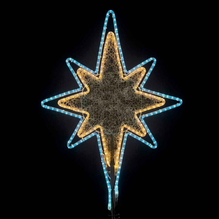 Форма звезды считывается мгновенно, без пояснений. Это универсальный и праздничный символ, понятный каждому. Эффект мерцания придаёт макушке динамику и визуальное «дыхание», особенно заметное в вечернее и ночное время.