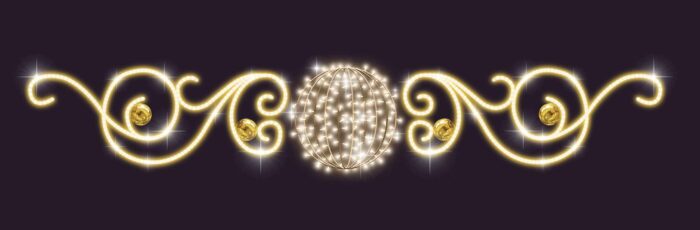 Световая перетяжка СК-143 от JOYLED — это изящное декоративное решение для городского, коммерческого или праздничного оформления. Конструкция выполнена в виде вытянутого светового модуля длиной 4,5 метра и высотой 0,6 м, с равномерно распределёнными светодиодами тёплого золотого оттенка.