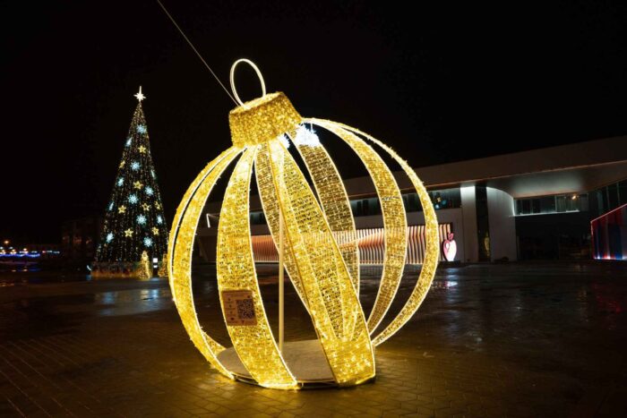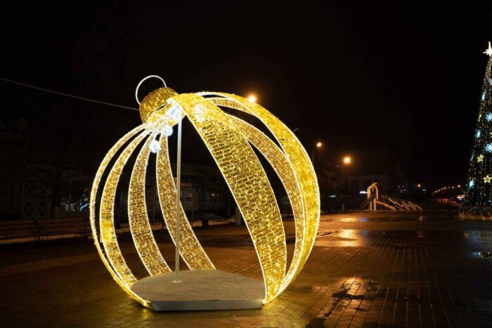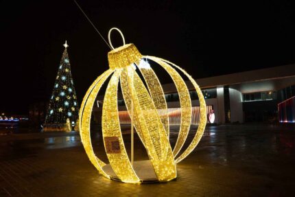 Фигура предназначена для круглогодичного уличного использования, но особенно востребована в зимний сезон: на Новый год, День города и корпоративные мероприятия. Благодаря универсальному дизайну и большим габаритам, световой шар становится ярким акцентом в любом пространстве — от торговых центров до городских улиц.