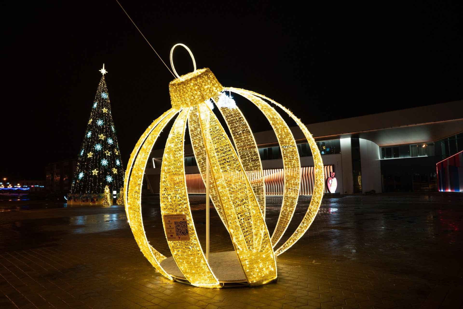 Объёмный световой шар СК-160-1 — эффектная 3D-фигура для улицы с тёплым свечением. Размер 4×4,3 м, прочный металлический каркас, защита IP65. Подходит для оформления городов, площадей, ТЦ, фотозон и новогодних мероприятий. Производство и монтаж под ключ от JOYLED.