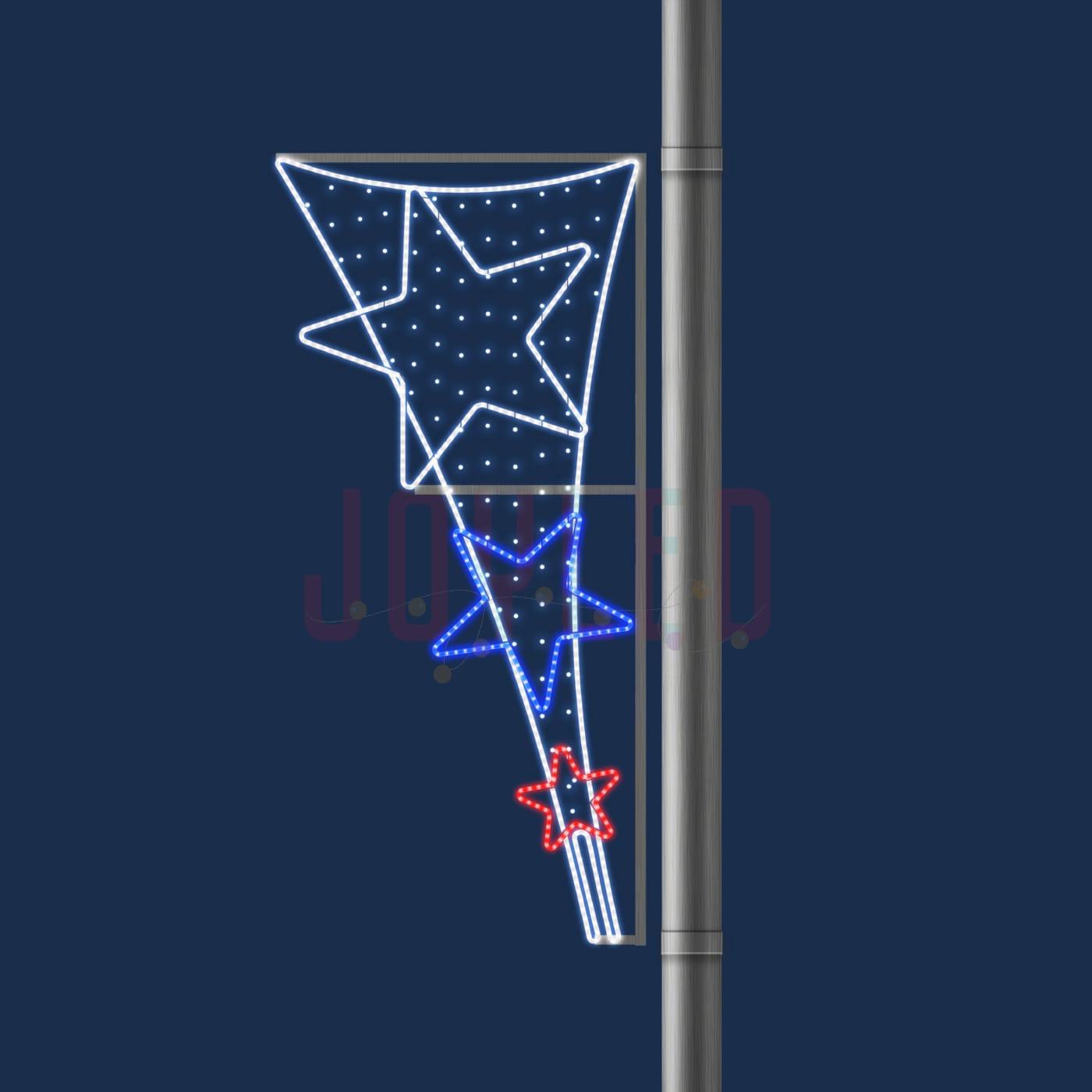 Световая уличная консоль от JOYLED — это надёжный и эстетичный элемент городского новогоднего и праздничного оформления, который монтируется на опоры уличного освещения, фасады зданий, колонны и арки. Размер конструкции — 1×2,1 м, что позволяет легко масштабировать оформление: от одного столба до сотен световых точек на центральной улице или парке.
