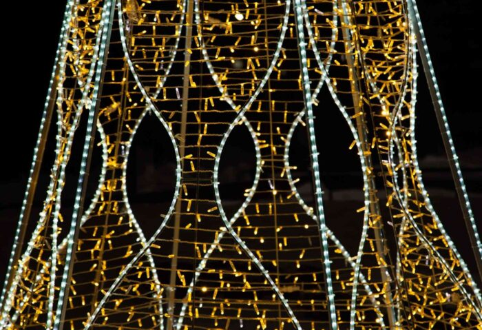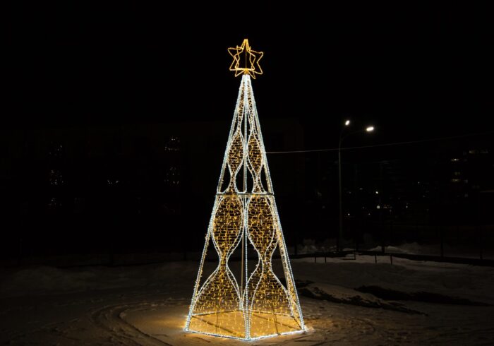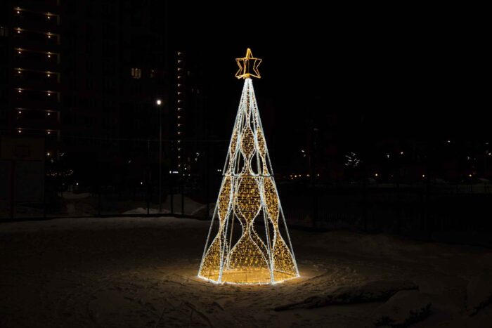 Световая ель «СК-201-12» высотой 4 метра — это надёжное, безопасное и визуально выразительное решение для новогоднего оформления улиц, парков, фасадов, территорий рядом с ТЦ и БЦ. Компактный размер позволяет устанавливать её в местах с ограниченной площадью, а мощное светодиодное освещение делает её заметной даже на фоне крупных архитектурных объектов.