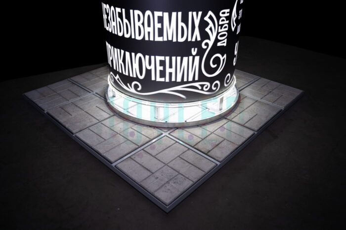 Размеры 2,54×1,7 м позволяют гармонично вписать объект в любое городское пространство, не перегружая композицию и при этом создавая акцент. За счёт симметричной конструкции и открытого каркаса афиша может стоять отдельно либо использоваться в составе композиции — например, рядом с ёлкой или световыми фигурами.