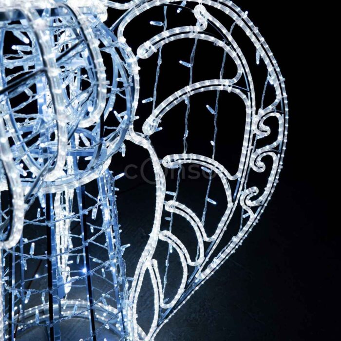 Новогодняя фигура «Ангел» воплощает образ небесного защитника в изящном световом исполнении. Размеры 1,5×1,8×0,8 метра создают величественное присутствие ангела, который простирает крылья над пространством, даруя чувство защищённости и духовного покоя. Высота 1,8 метра делает фигуру заметной издалека, не подавляя при этом окружающее пространство. Ангельский образ особенно актуален в новогодние праздники, когда люди ожидают чудес и обновления жизни.