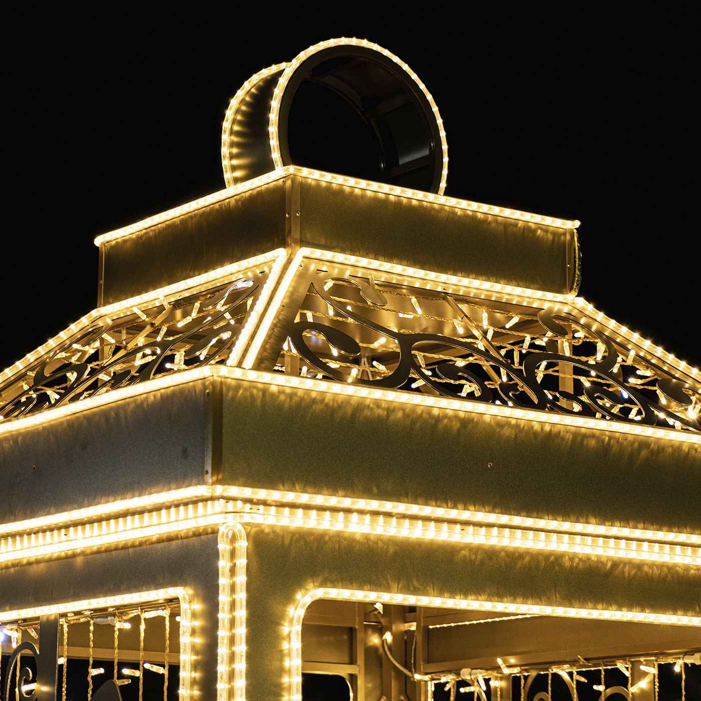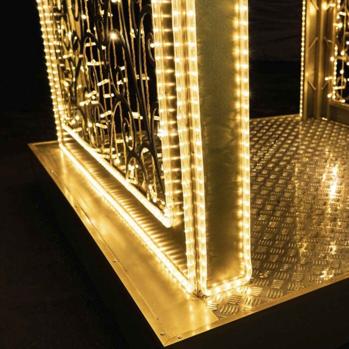 Благодаря классической форме и тёплому золотому свечению фонарь отлично вписывается в городскую среду, фасады торговых и офисных зданий, площадки перед ресторанами и культурными учреждениями. Эта фигура одинаково хорошо работает и как арт-объект, и как фон для фотосессий — особенно в комплексе с другими декорациями JOYLED.