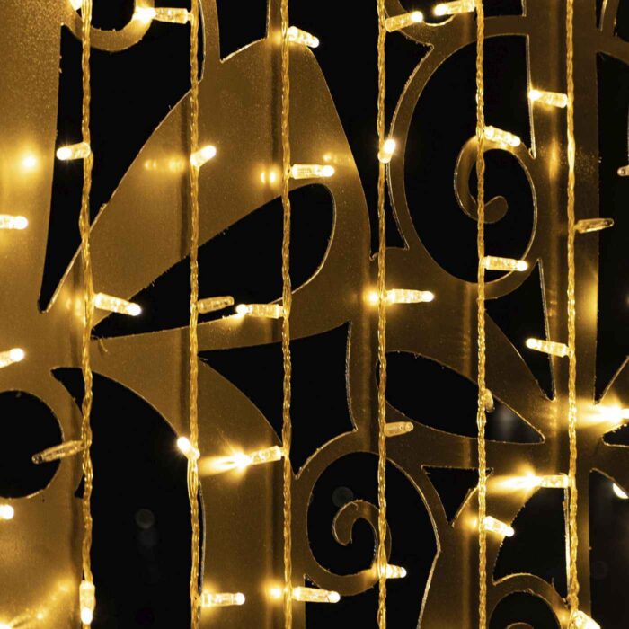 Светодиоды встроены в конструкцию и равномерно распределены по поверхности. Они дают яркое, но мягкое золотое свечение, которое видно издалека, но не слепит глаза.
