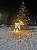Лось — символ спокойствия, силы и северной природы. Такая фигура вызывает доверие, ассоциируется с качеством и уютом. Он отлично вписывается в атмосферу новогоднего оформления, не перегружает пространство, но создаёт мощный визуальный акцент.