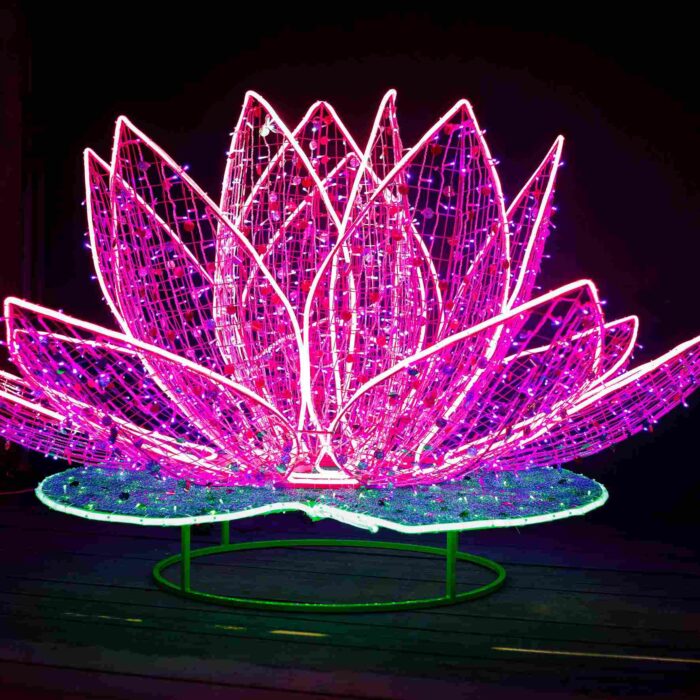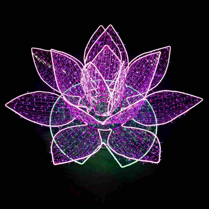 Световая фигура лотоса воплощает один из самых значимых символов восточной философии и мировой культуры. Выбор высоты от 0,6 до 1,25 метра позволяет создать идеальный масштаб для различных пространств — от интимных медитативных уголков до масштабных общественных зон.