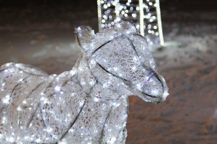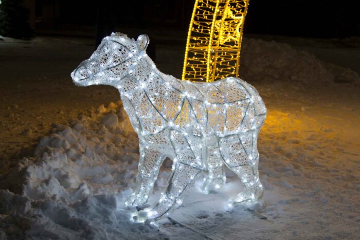 Размеры фигуры — 1,5×0,9 м. Форма — объёмная 3D. Каркас выполнен из металла с антикоррозийной обработкой. Светодиоды долговечны, рассчитаны на более 50 000 часов беспрерывной работы. Подходит для использования в суровых погодных условиях — от −50 до +40 °C.
