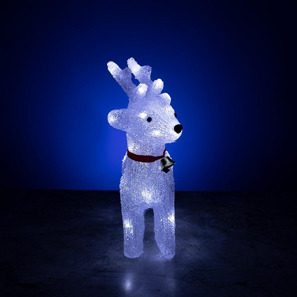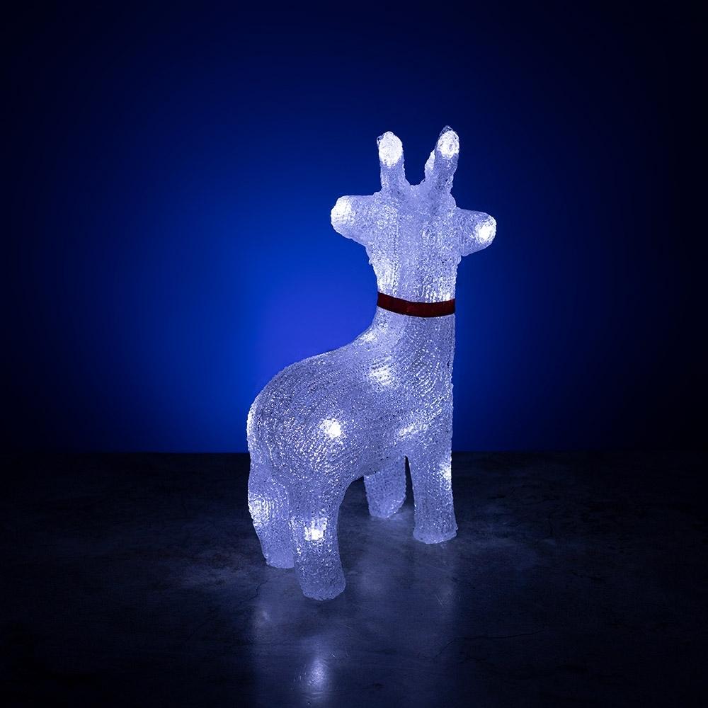 Благодаря корпусу из литого акрила и равномерному холодному свечению, фигура выглядит нарядно и стильно даже днём. А вечером становится мягким световым акцентом — особенно в сочетании с гирляндами или ёлочными композициями.