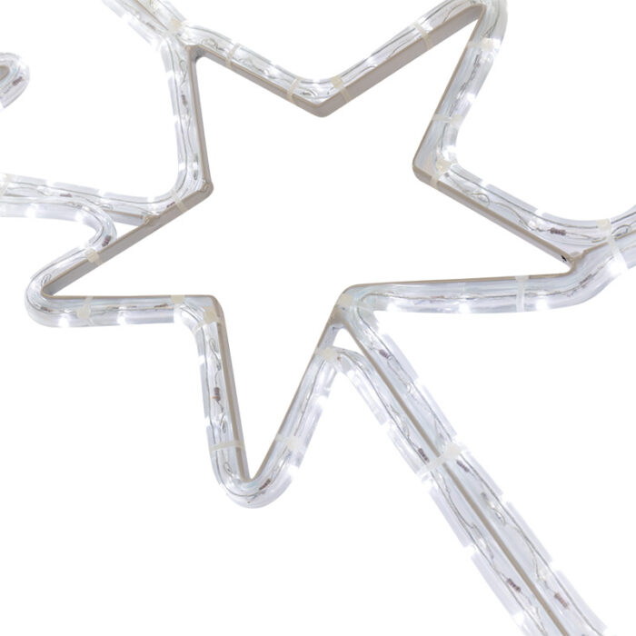 Фигура собрана на прочном металлическом каркасе, рассчитанном на длительную эксплуатацию. Светодиоды встроены в дюралайтовый контур, который защищён от влаги, пыли и механических повреждений.