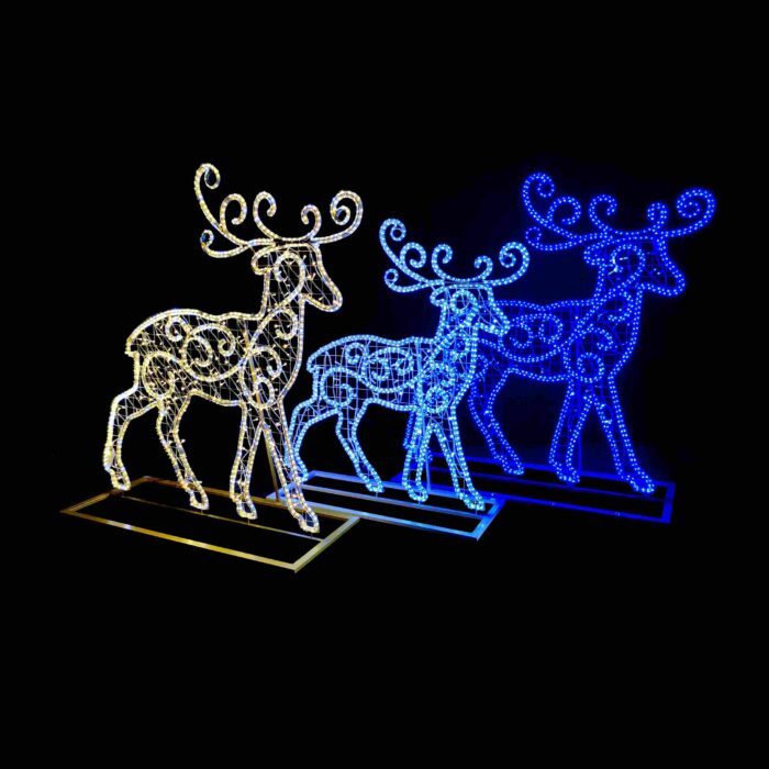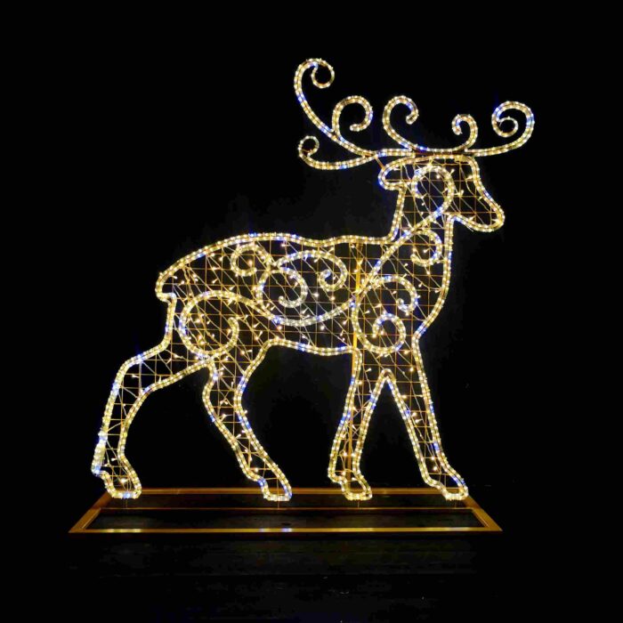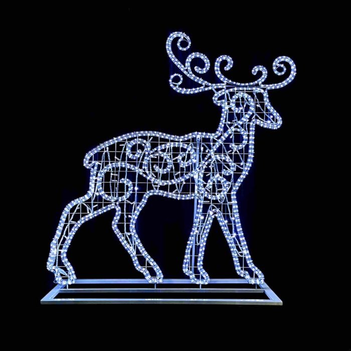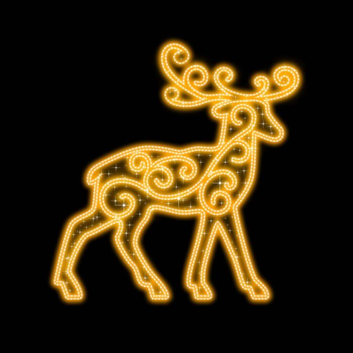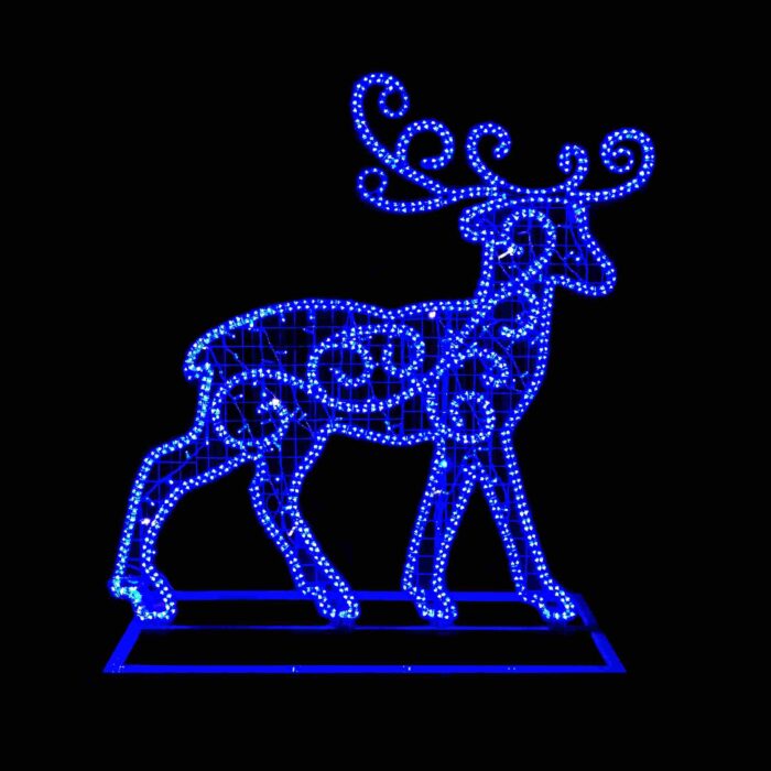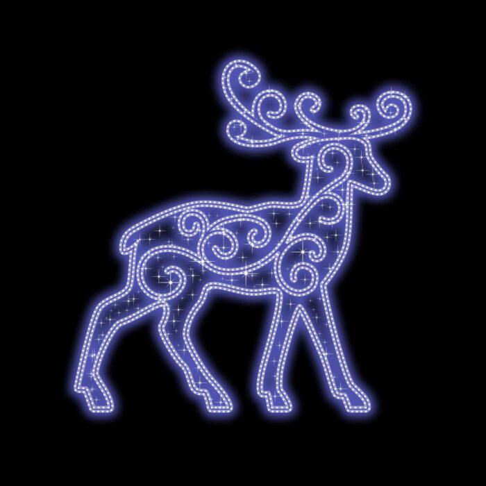 Оленя можно использовать как самостоятельную фигуру или включить в световую композицию с санями, ёлкой, снежинками и другими персонажами. Такой декор будет актуален не только в Новый год, но и в рамках зимнего оформления в декабре–феврале.