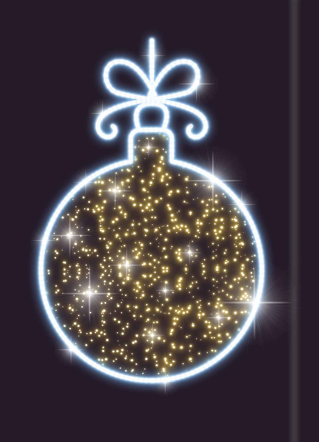 Световая фигура «Шар СК-209» — это простой по форме, но выразительный по визуальному эффекту элемент уличного оформления. Он добавляет праздничного настроения и света в любое пространство: на фасаде здания, у входа в ТЦ, в пешеходной зоне или на открытой площадке. Благодаря правильным пропорциям (1×1,4 м) и яркому свечению тёплого или холодного оттенка, фигура заметна и днём, и особенно в вечернее время.