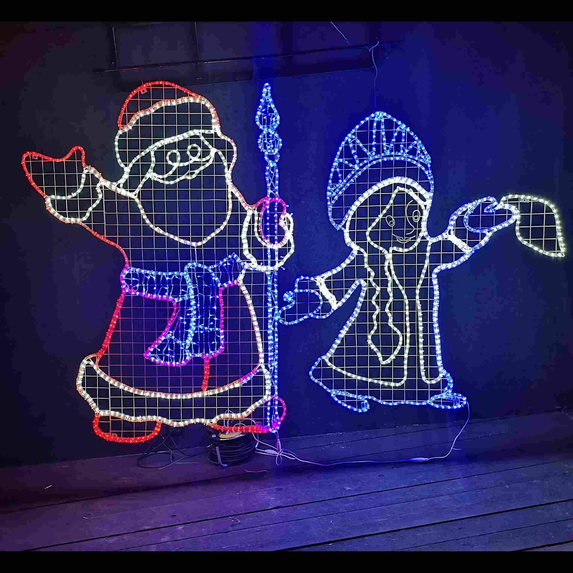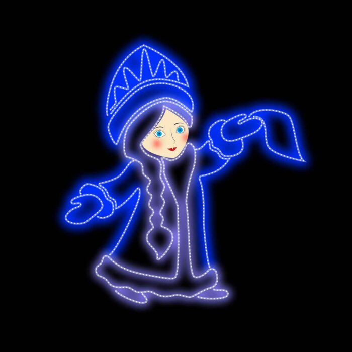 Световая фигура «Снегурочка» — это воплощение зимней сказки в современном уличном оформлении. Узнаваемый образ, чёткие линии каркаса и мягкое свечение делают эту фигуру настоящим центром притяжения для детей и взрослых. Высота изделия варьируется от 1,4 до 1,9 метра, благодаря чему оно уместно смотрится как на городской площади, так и у входа в торговый центр или в сквере у дома культуры.