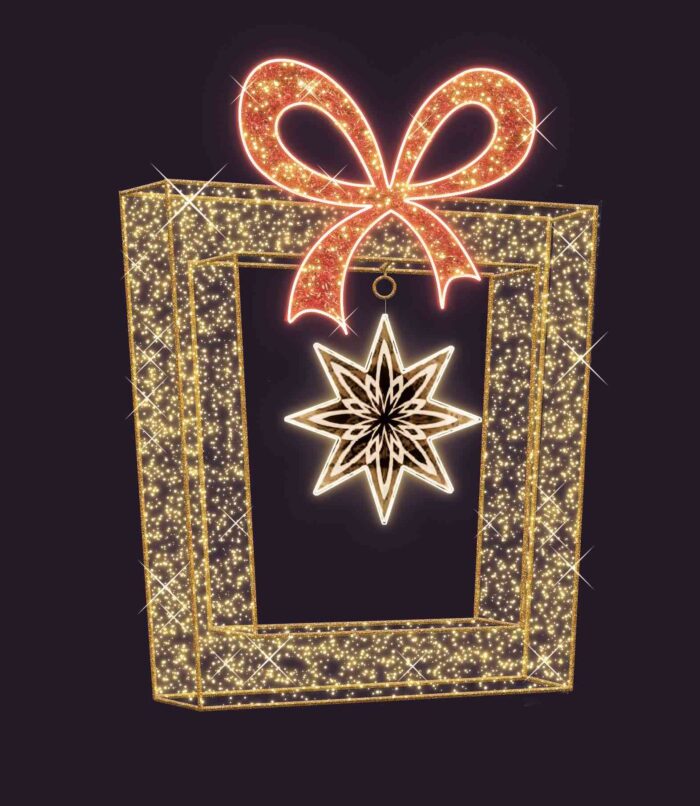 Объемная световая фотозона в виде подарка высотой 3 метра для новогодних праздников и корпоративов. Металлический каркас с защитой IP65 работает от -50°C до +40°C. Теплое LED-свечение создает уютную атмосферу для фотосессий. Серия OPTIMA-PRO от JOYLED. Подключение в комплекте. Срок службы 50000 часов, гарантия 12 месяцев.