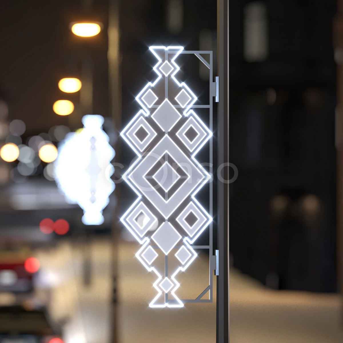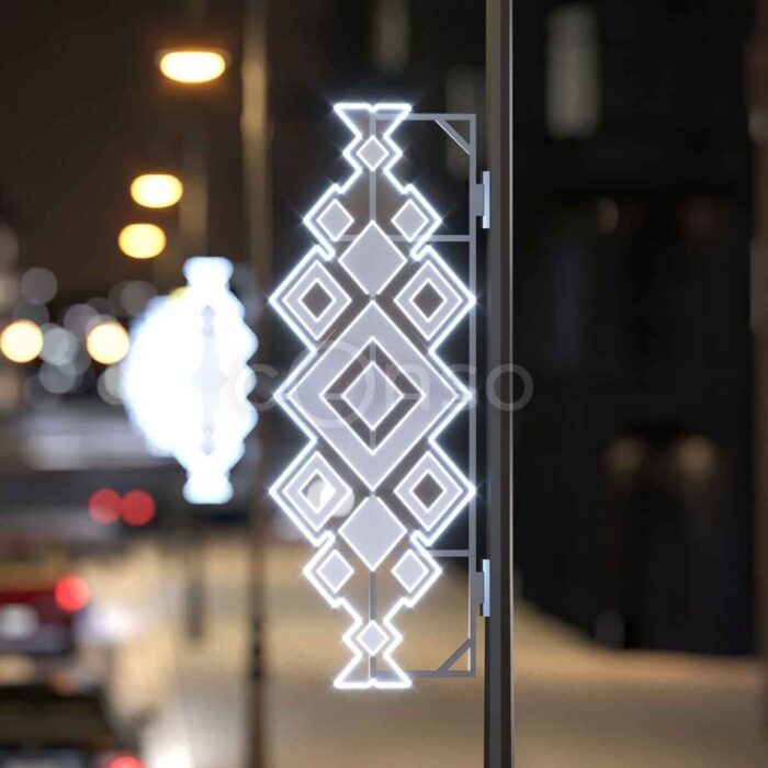 Световая консоль — это готовое решение для украшения опор уличного освещения. Такая фигура делает улицы праздничными, подчёркивает архитектуру и задаёт стиль общественным пространствам. Консоль крепится на стандартную опору и обеспечивает равномерное холодное свечение, заметное даже с большого расстояния.
