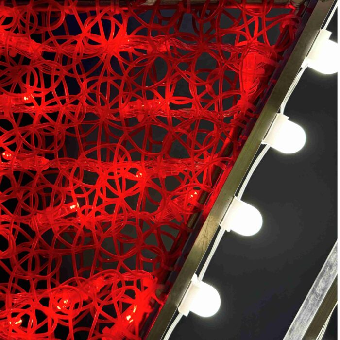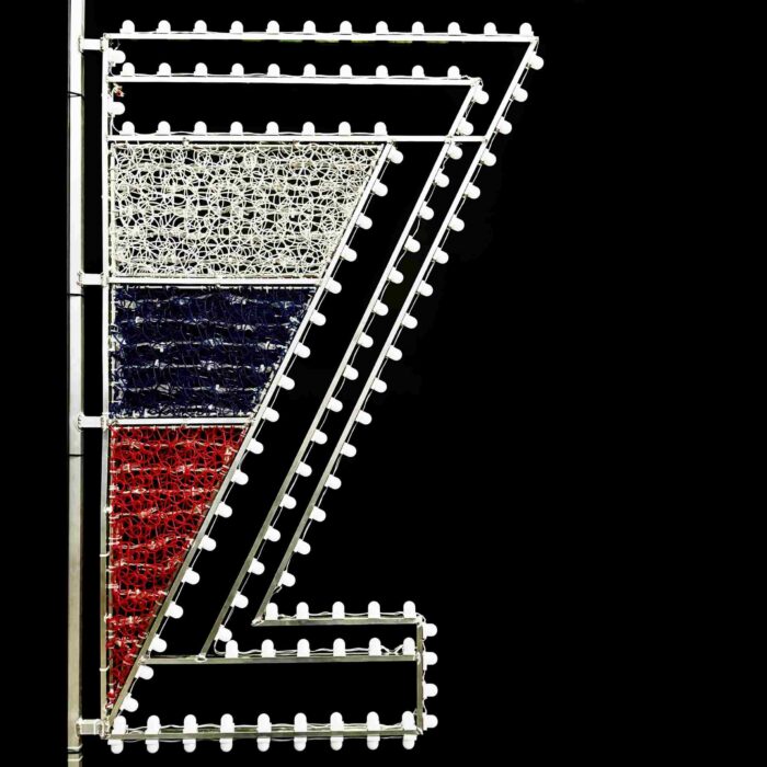 Цвет свечения — классический триколор. Яркий, но не режущий глаз. Вызывает ассоциации с государственным флагом и объединяет поколения. Особенно востребована на 9 Мая, в День Победы, а также ко Дню города, Дню России, юбилейным событиям и другим важным торжествам.