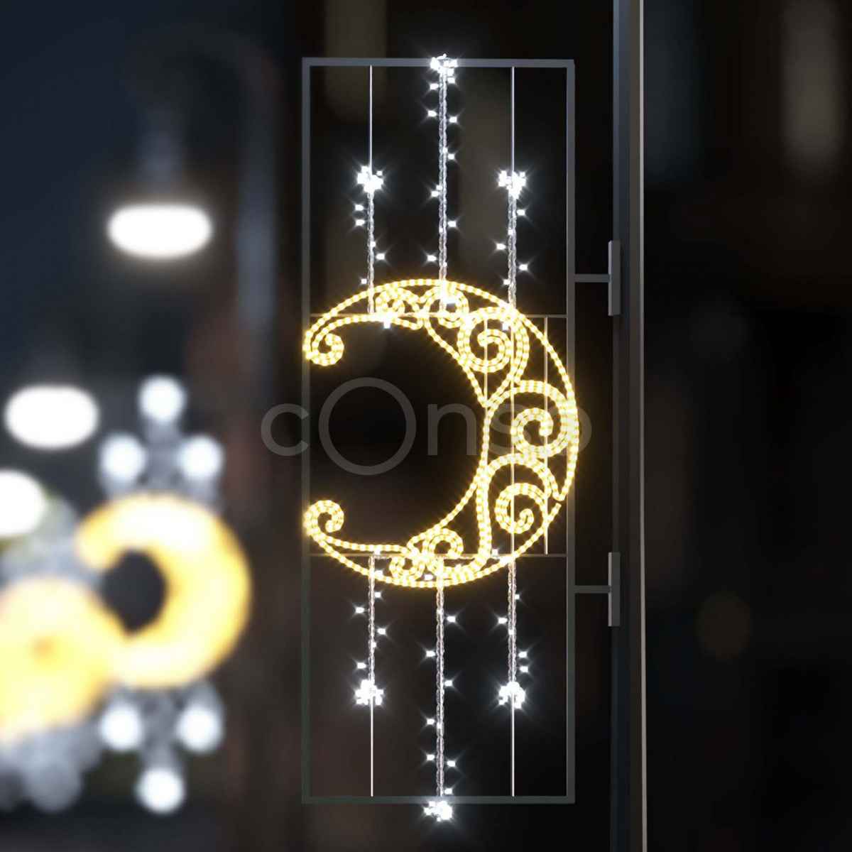 Светодиодная консоль «Золотой полумесяц» — это лаконичная, но яркая 2D фигура, специально разработанная для установки на опоры уличного освещения, столбы, пилоны и фасады. Элегантная форма полумесяца в тёплом золотом свечении делает её универсальной для различных форматов праздничного декора: от новогоднего оформления до общегородских мероприятий.