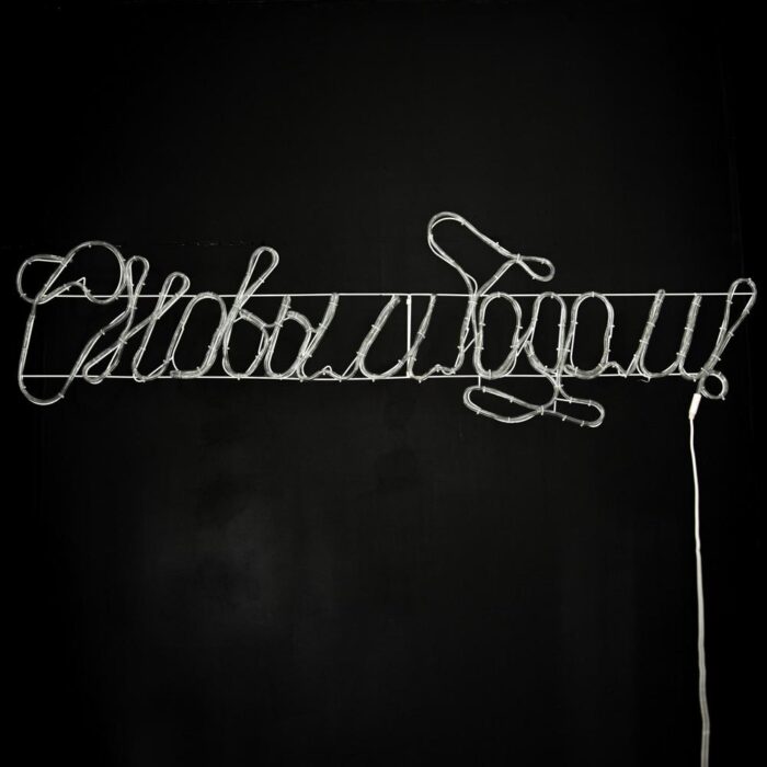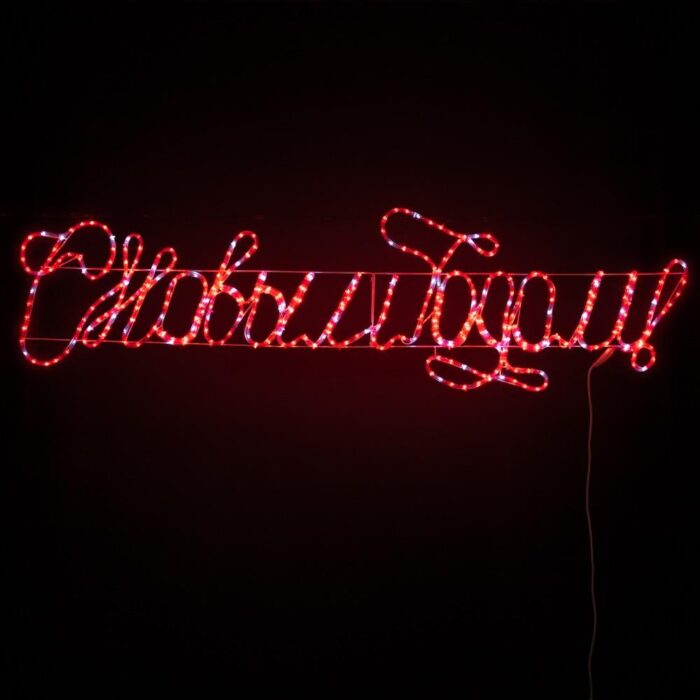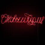 Каркас изделия выполнен из надёжного и гибкого дюралайта диаметром 11 мм — это материал, специально разработанный для эксплуатации в уличных условиях. Он устойчив к низким температурам, влаге, солнечному свету и механическим воздействиям. Светодиоды встроены по всей длине дюралайта, благодаря чему надпись светится равномерно, без провалов яркости и затемнённых участков.