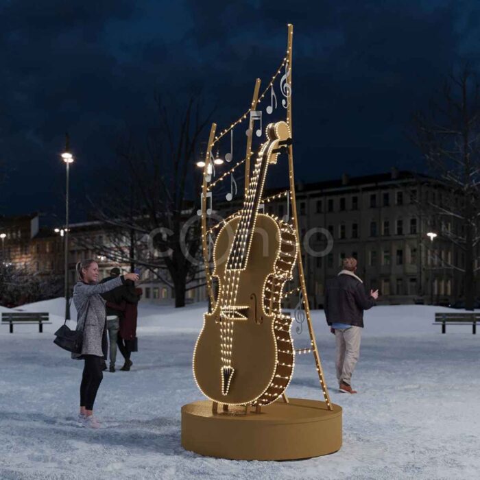 Световой арт-объект «Контрабас» — это выразительная уличная фигура в виде музыкального инструмента, созданная для оформления городского пространства, общественных мест, торговых центров, концертных площадок и креативных фотозон.
