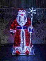 Световая фигура Деда Мороза воплощает главный символ российского Нового года в элегантном световом исполнении. Выбор высоты от 1,7 до 2,3 метра позволяет адаптировать фигуру под масштаб конкретного пространства и создать оптимальный визуальный эффект.