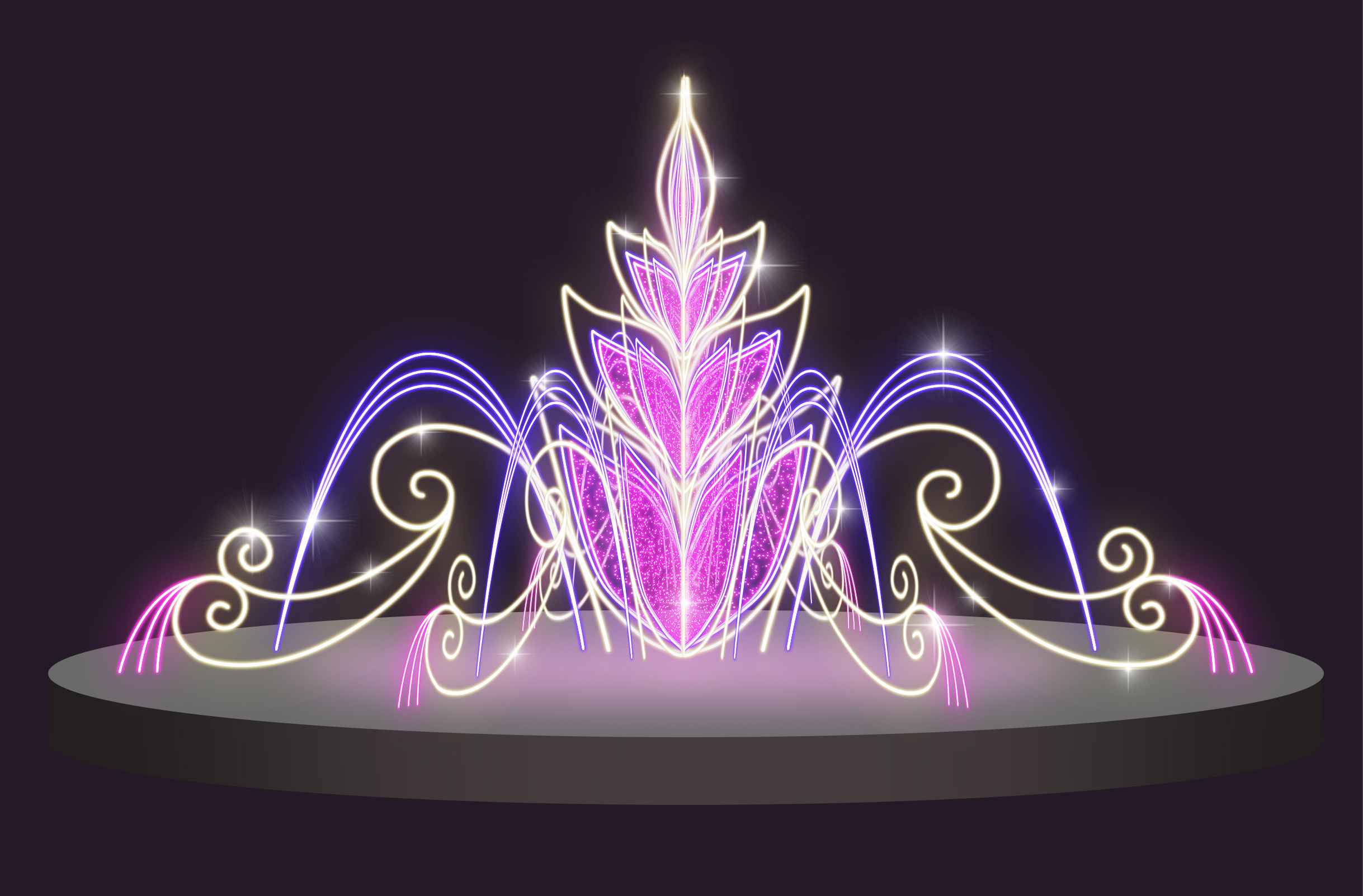 Объёмная световая фигура СК-336 выполнена в форме динамичного фонтана и предназначена для установки на улицах, в парках, скверах и на городских площадях. Она становится главным визуальным акцентом пространства, особенно в тёмное время суток, когда её яркое сине-фиолетовое свечение создаёт атмосферу праздника, уюта и волшебства.