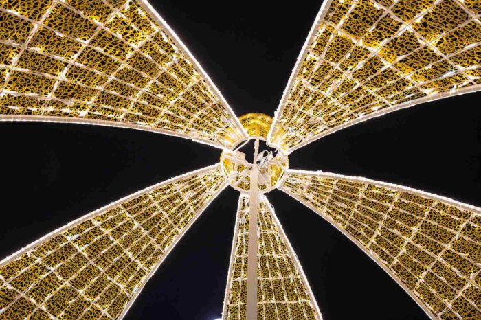 Освещение реализовано с помощью энергосберегающих светодиодов с тёплым золотым свечением. Это создаёт праздничную и уютную атмосферу, комфортную для восприятия в вечернее и ночное время.