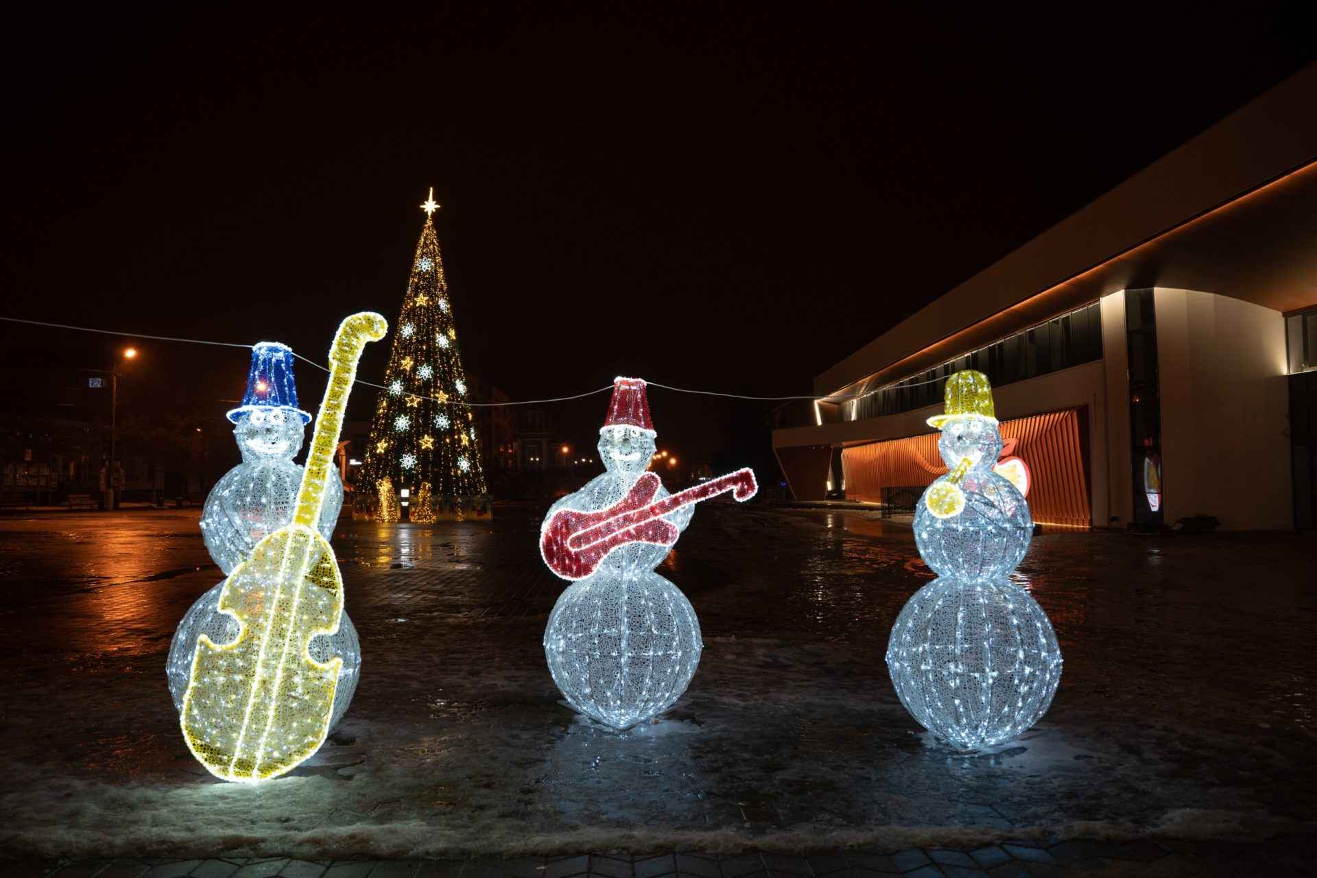 Снеговики — один из самых узнаваемых символов зимы и Нового года. Светящиеся фигуры привлекают внимание взрослых и детей, формируют центр притяжения, зону фото или просто украшают пространство. Они уместны во дворах жилых комплексов, у входа в торговый центр, на площадях и в парках.