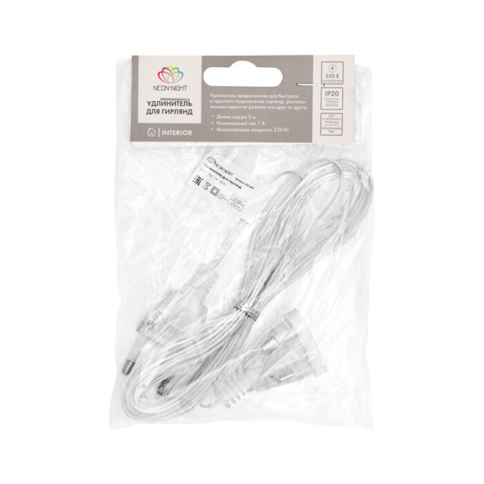 Если необходимо подключить гирлянды, удаленные от источника питания или расположенные на значительном расстоянии друг от друга, используйте удлинитель для быстрого и легкого соединения.