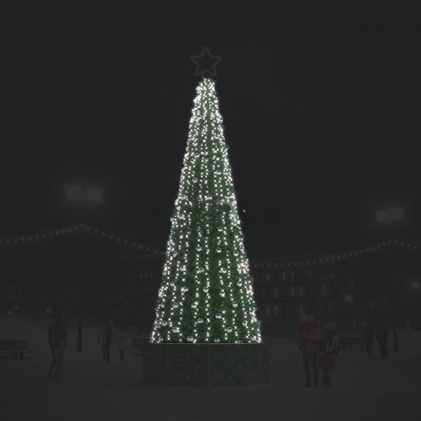 Комплект «Серебряный луч» создаёт эффект ледяного блеска на уличных ёлках JOYLED высотой 8–10 м. Пластиковые шары и светотехника формируют мягкое холодное свечение, визуально удлиняя ёлку и подчёркивая её силуэт. Морозостойкие материалы и защита IP65 позволяют использовать украшения в любых погодных условиях — на городских площадях, в ТРЦ, парках и бизнес-центрах.