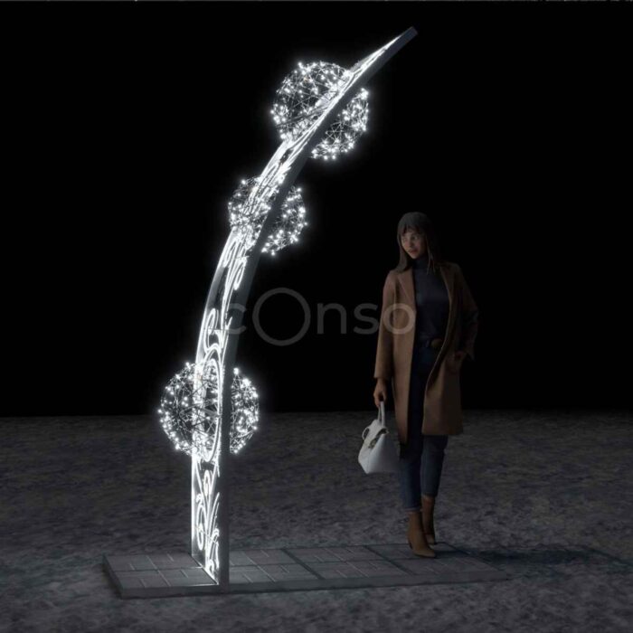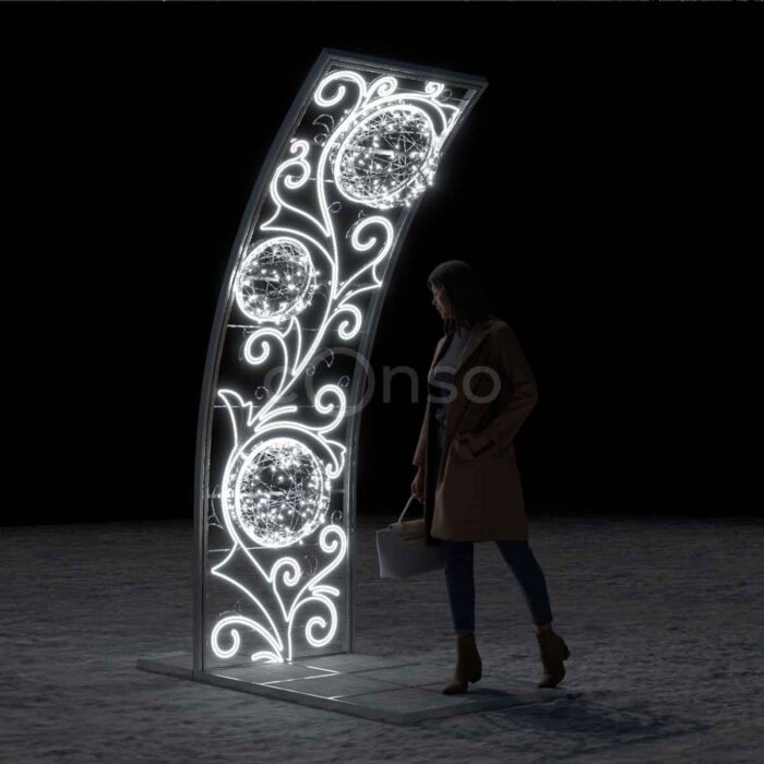 Световая полуарка «Зимний цветок» — это современный элемент праздничного освещения, который превращает любую улицу, парк или торговый центр в место с атмосферой уюта и волшебства. Благодаря изящному дизайну и мягкому холодному свечению, арка подчёркивает праздничное настроение и создаёт яркий акцент в оформлении городской среды.
