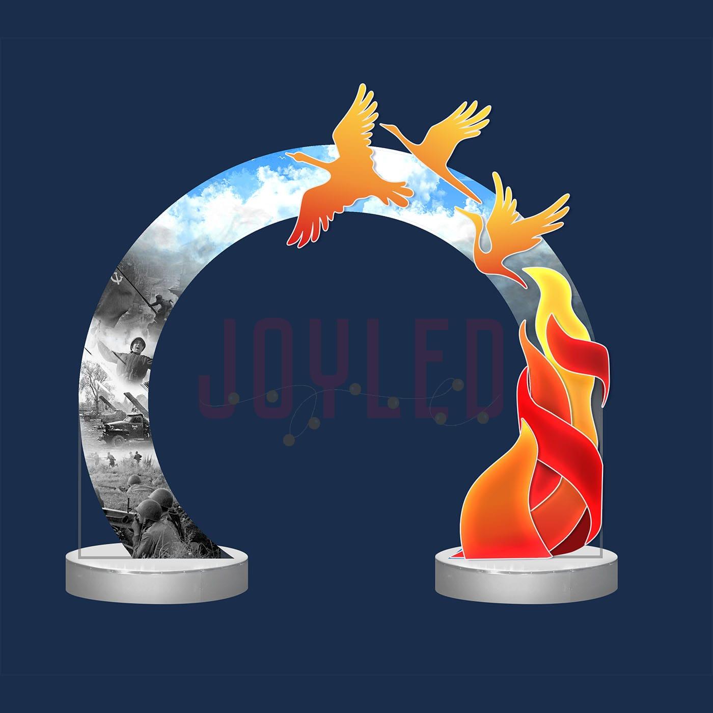Фигура создаёт архитектурный ритм и подчёркивает торжественность событий — от Дня Победы до Дня города или новогодних праздников. Световая арка становится точкой притяжения, формирует маршруты пешеходов, зонирует пространства и даёт ощущение праздника.
