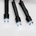 Светодиоды белого цвета создают яркое, но мягкое свечение, подчёркивающее контуры деревьев, арок, перил, изгородей. За счёт цвета провода гирлянда идеально сливается с хвоей и зеленью, оставаясь незаметной днём и раскрываясь ночью эффектным светом.