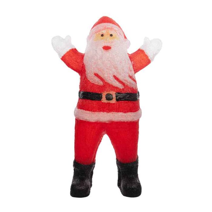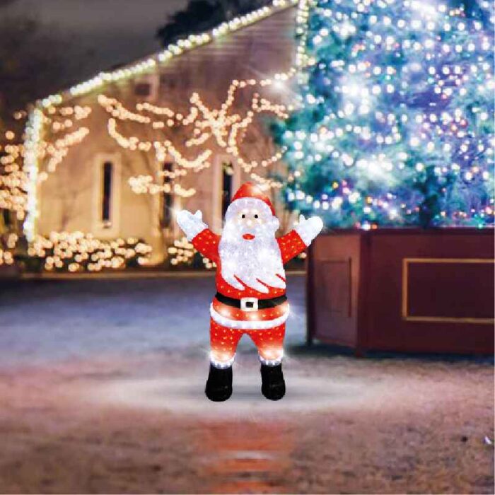 Световая фигура «Приветствующий Санта Клаус» из акрила — идеальный новогодний акцент для входных групп, витрин и праздничных зон. Высота 120 см, 320 светодиодов, защита IP65. Белое свечение, объёмный корпус, прочная конструкция. Подходит для улицы и помещений. Монтаж под ключ от JOYLED.