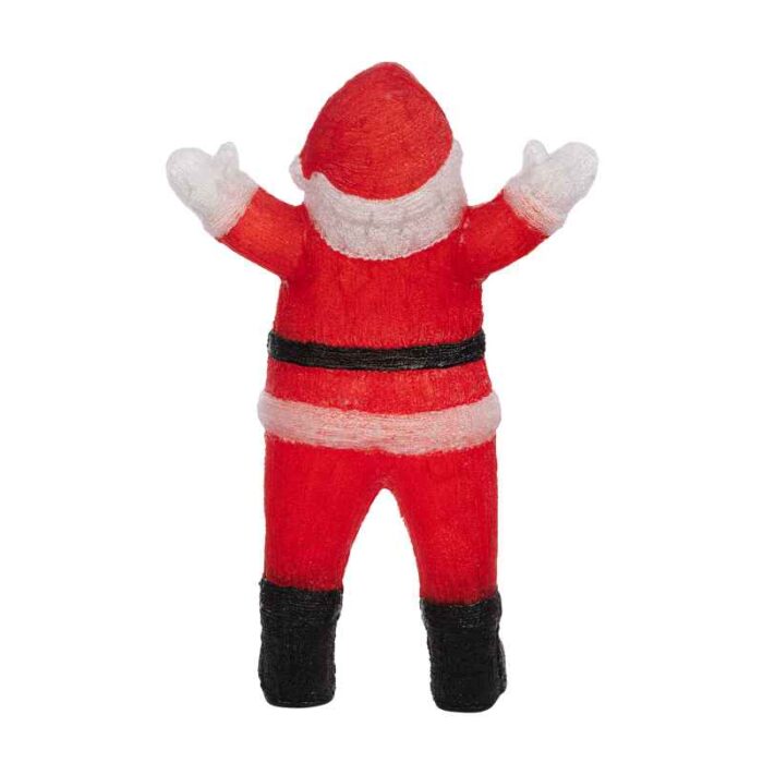 Высота Санты — 120 см. Корпус — объёмный, 3D. Внутри — 320 ярких белых светодиодов с равномерной засветкой по всему силуэту. Светодиоды отличаются низким энергопотреблением и высоким ресурсом: около 50 000 часов непрерывной работы. Энергопитание — от сети 31 В через внешний блок (поставляется отдельно).