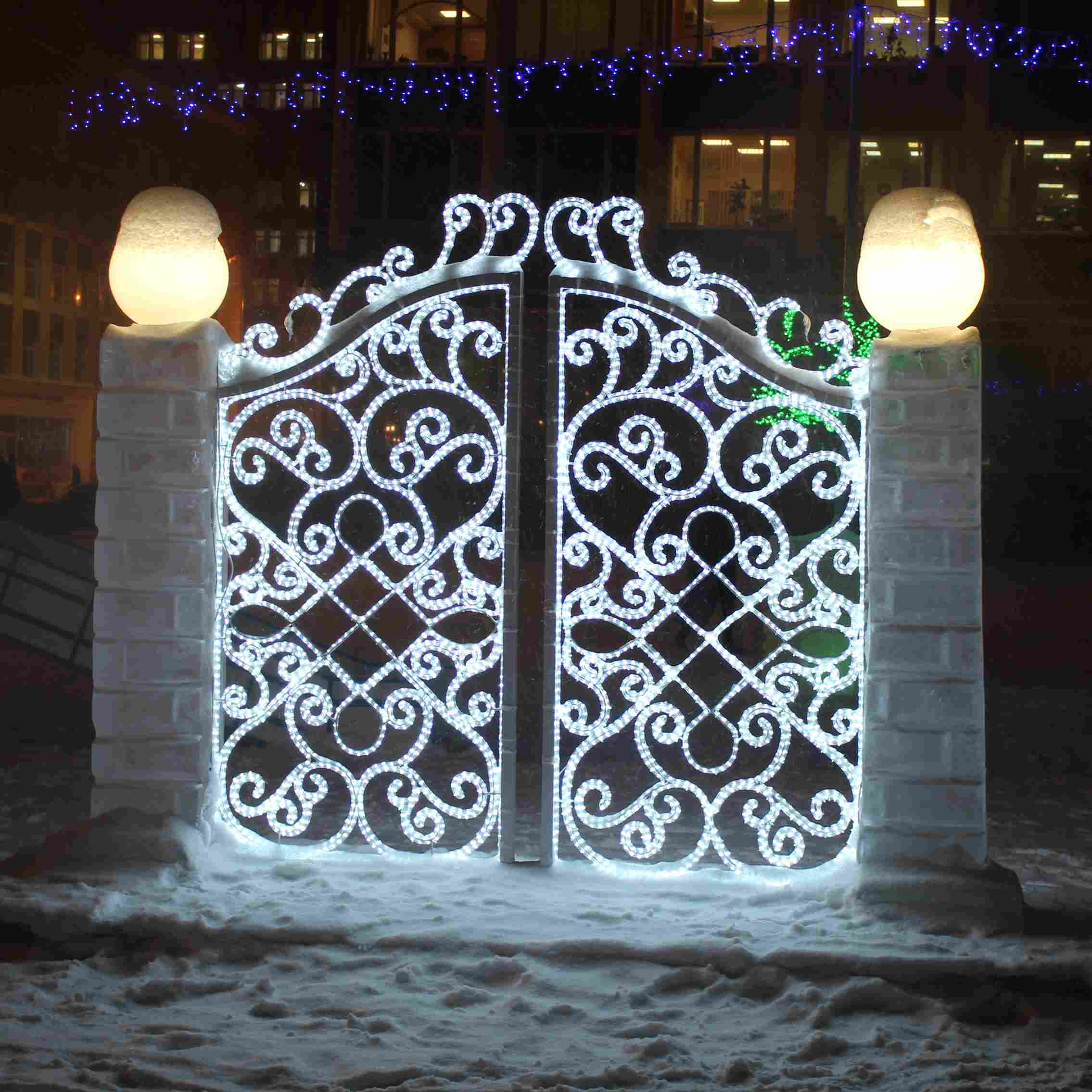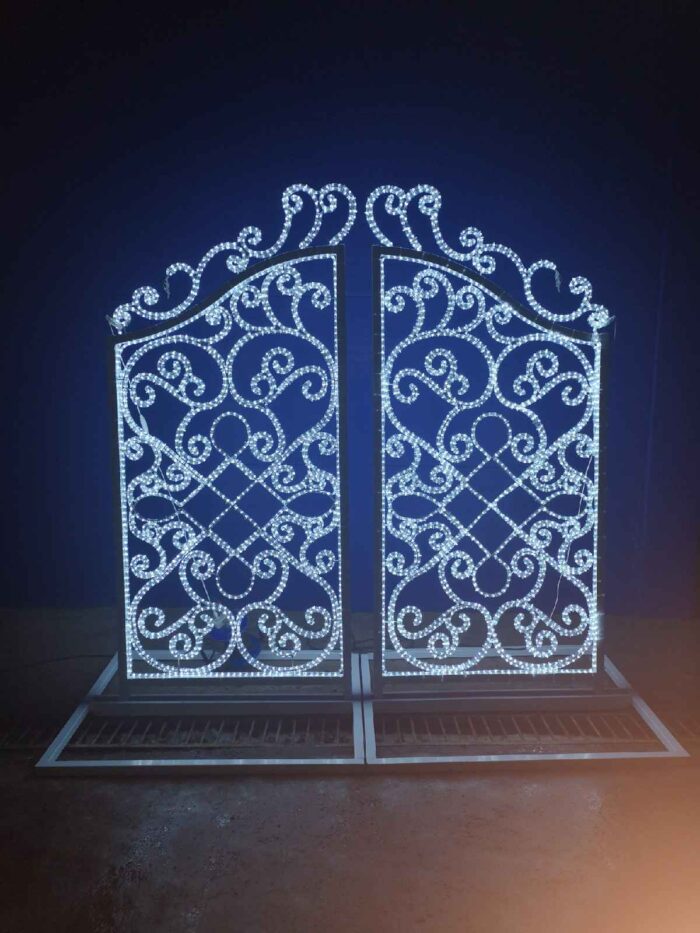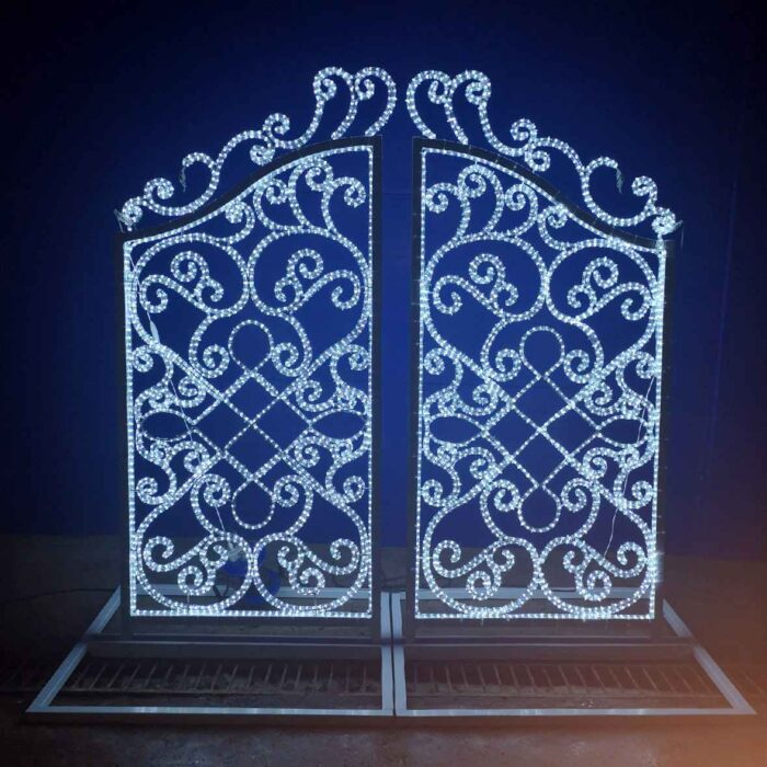 Световая фигура «Ворота» от JOYLED — элегантное решение для оформления улиц, площадей, торговых центров и входных групп. Конструкция из прочной стали с антикоррозийным покрытием обеспечивает надежность и долговечность. Высота от 1,5 до 2,2 м позволяет подобрать оптимальный вариант под любую площадку. Доступен выбор цвета свечения. Подходит для круглогодичной эксплуатации на улице.