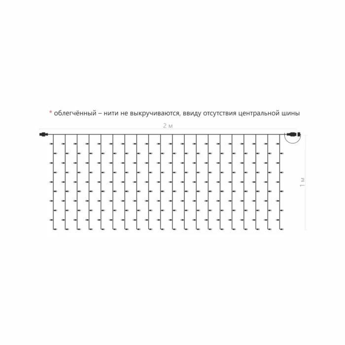 Уличная гирлянда-занавес 2×1 м с холодным белым свечением и 200 светодиодами. Идеальна для фасадов, окон, колонн и заборов. Прозрачный ПВХ-провод почти незаметен днём, а класс защиты IP65 обеспечивает работу при дожде и снегопаде. Надёжно работает при –40…+60 °C, срок службы — 15 000 ч. Можно соединять до 10 гирлянд в цепочку. Отличный выбор для новогоднего и праздничного оформления.