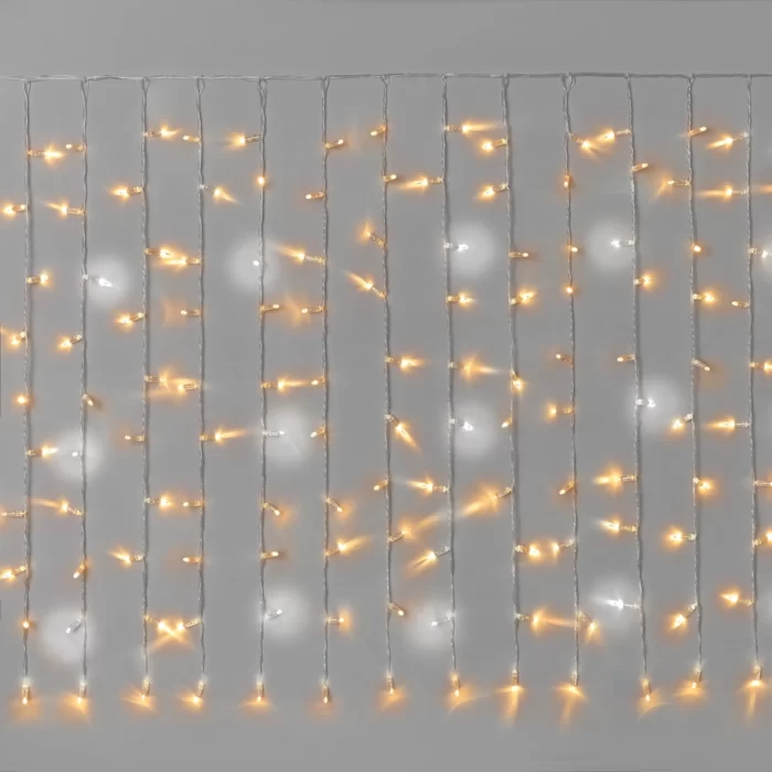 Профессиональная гирлянда-занавес 2×1 м с тёплым белым мерцающим светом и 200 LED. Подходит для фасадов, колонн, заборов и интерьеров. Прозрачный ПВХ-провод незаметен днём, а IP65 гарантирует защиту от дождя и снега. Работает при –40…+60 °C, срок службы 15 000 ч. Возможно соединение до 10 гирлянд в цепь. Отличный выбор для новогоднего оформления, корпоративов и городских праздников.